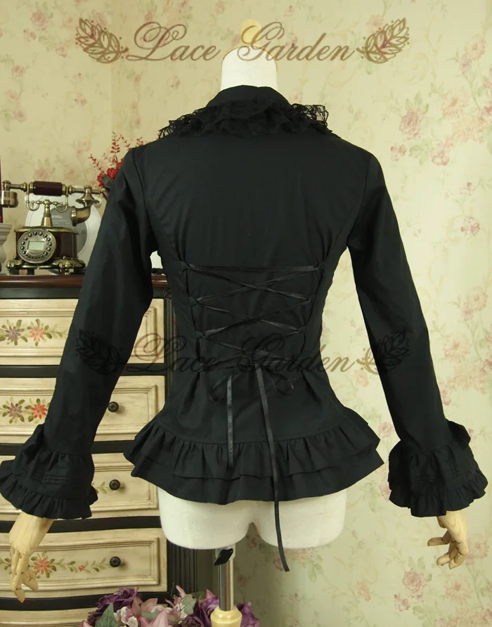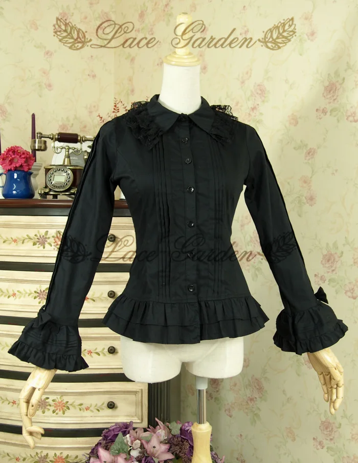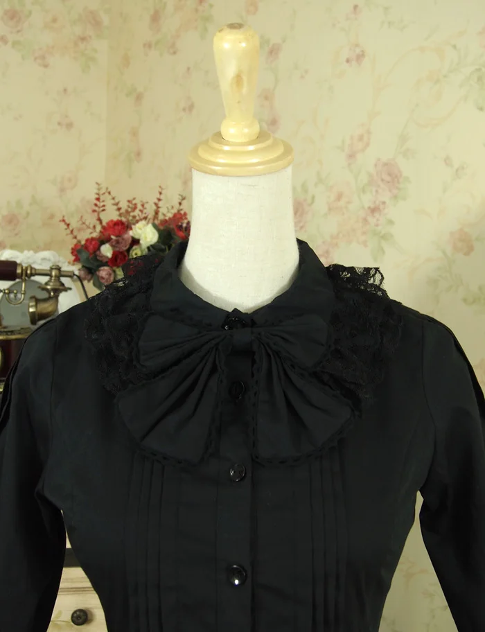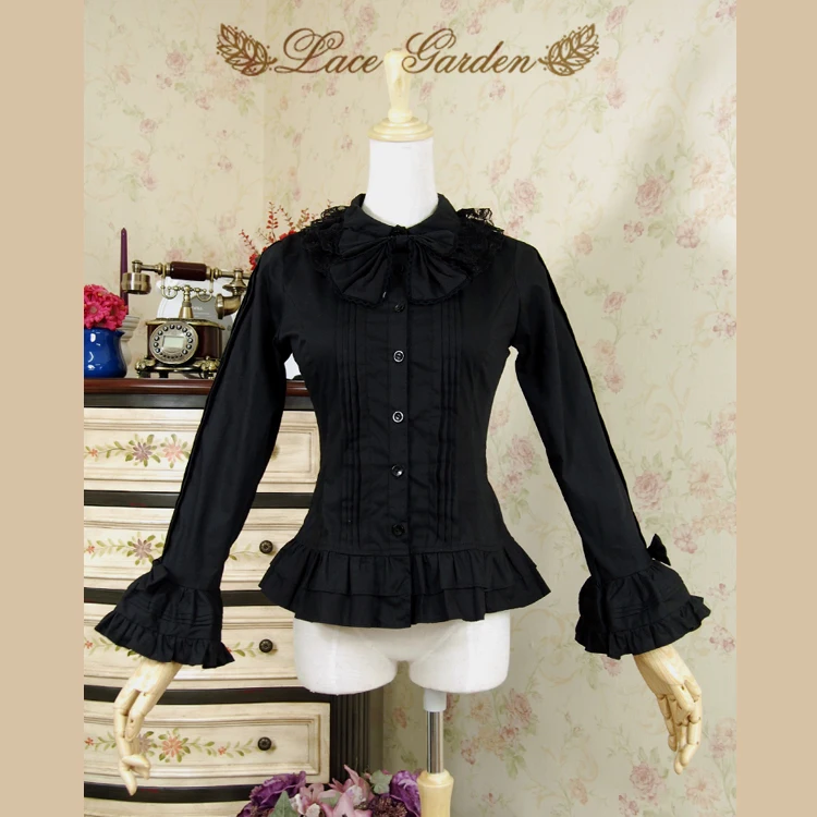 Images of Free Shipping 2019 Vintage Royal England Style Poplin Lace Flare Sleeve Shirt For Women White Black Bandage Bow blouse XS-2XL :