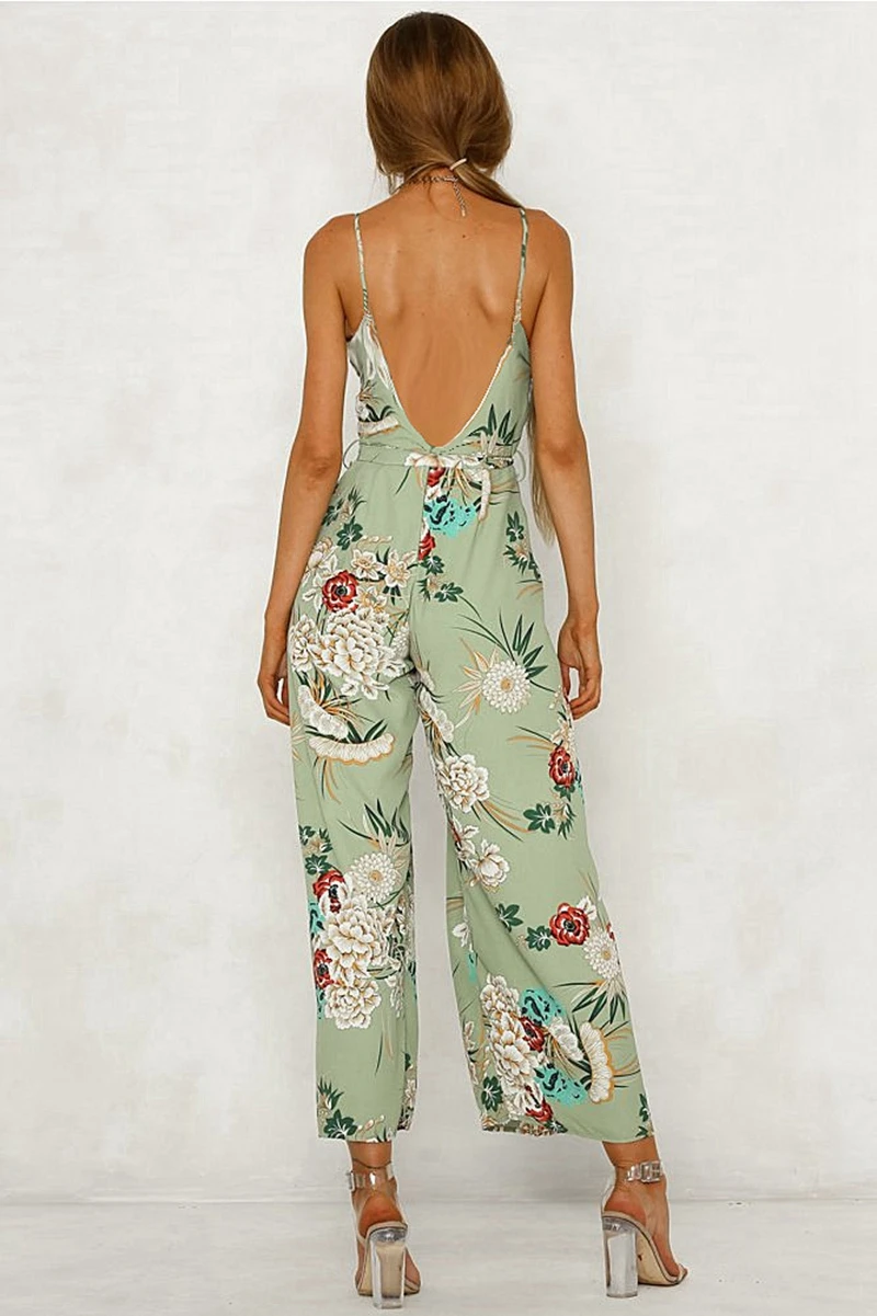Promo hot Sexy Print Split Jumpsuit Women casual summer 2020 overalls Female elegant sashes Jumpsuits Long Wide Leg Pants Beach style