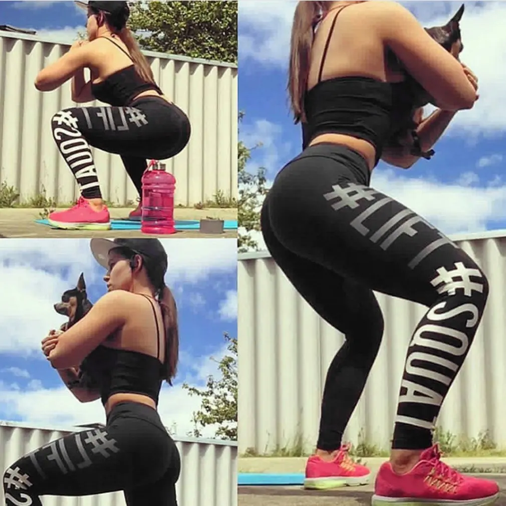 Images of Quick Dry English Letters Printing Long Leggings Women Long Fashion Trousers Breathable Female Slim High Elastic Clothing sale :